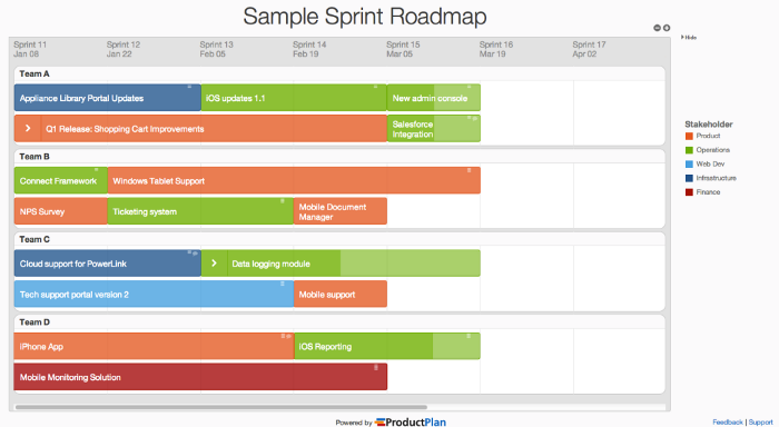 It’s basically a visual timeline for your team that can be used to communicate milestones to stakeholders outside of the development team, but also to ensure there is alignment between your company’s overall strategy.