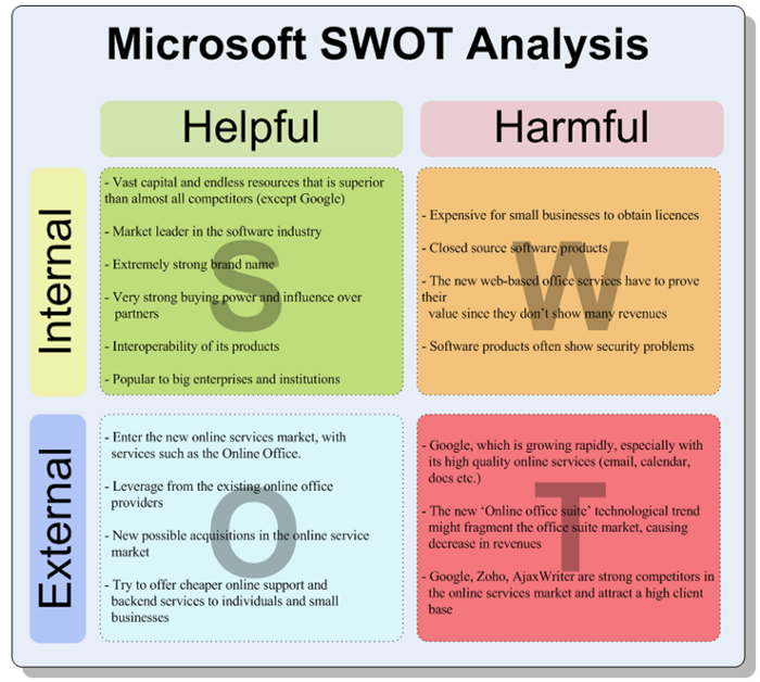 This is an example of a SWOT analysis done for Microsoft.