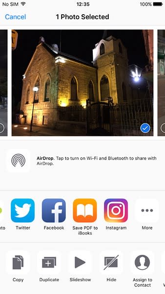 In the screenshot above, a user is browsing the native ‘photos’ app that comes pre-installed on the iPhone, and presses the ‘share’ icon. In this case, the ‘photos’ app would be considered the ‘host app’. When a user taps the Instagram extension from the list of sharing options, the operating system launches the Instagram extension.