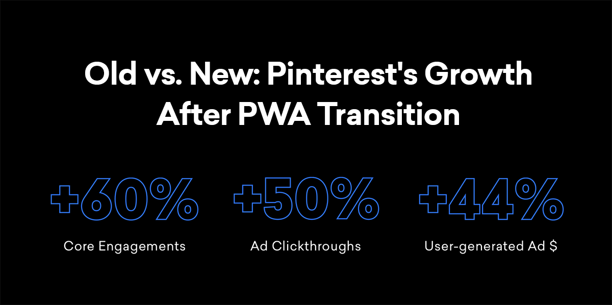 When Pinterest replaced their mobile website with a progressive web app (PWA) they immediately saw tremendous lift across several important metrics: