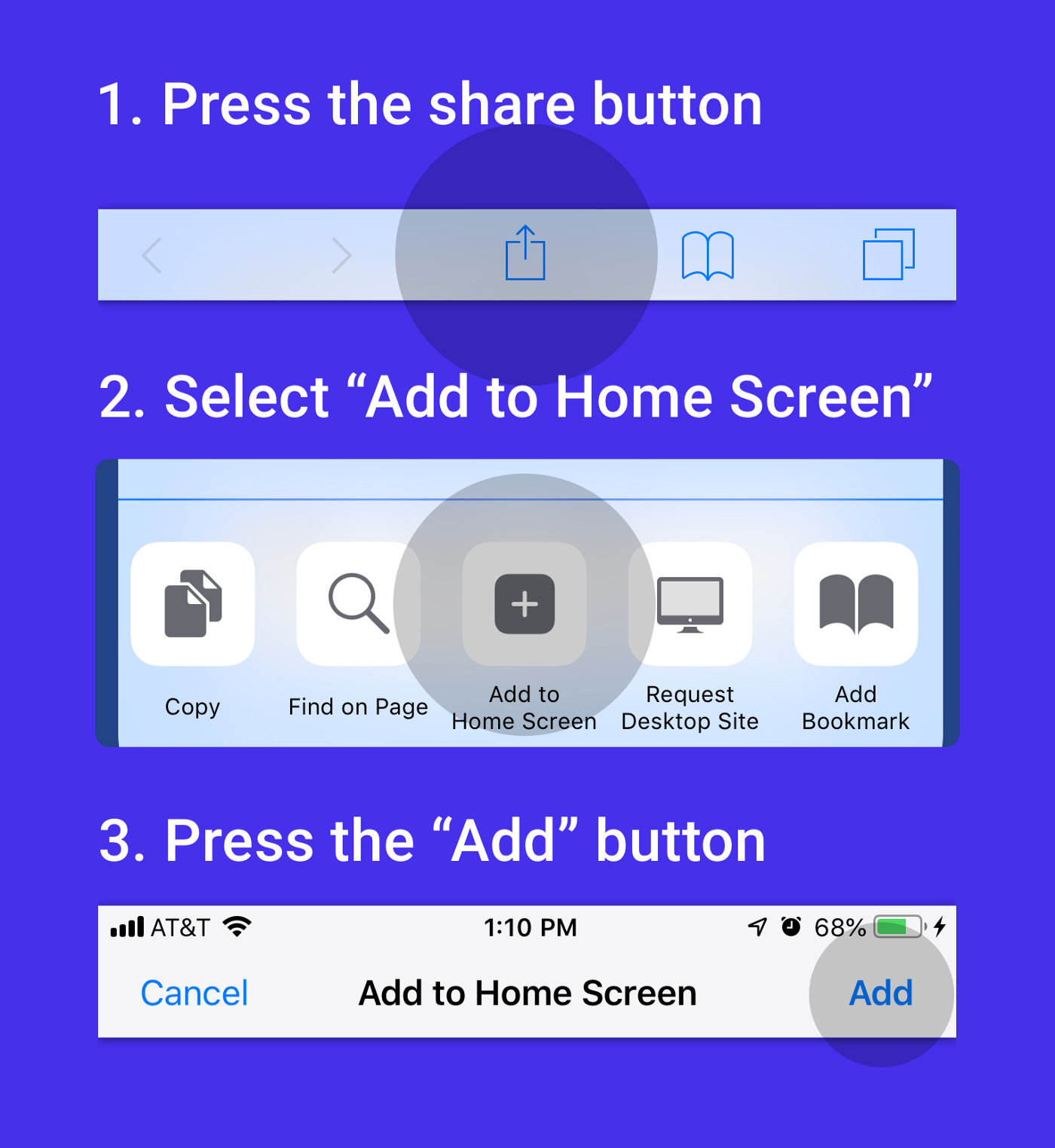 Instead, the user must manually open the system share functionality and find the “add to home screen” button.